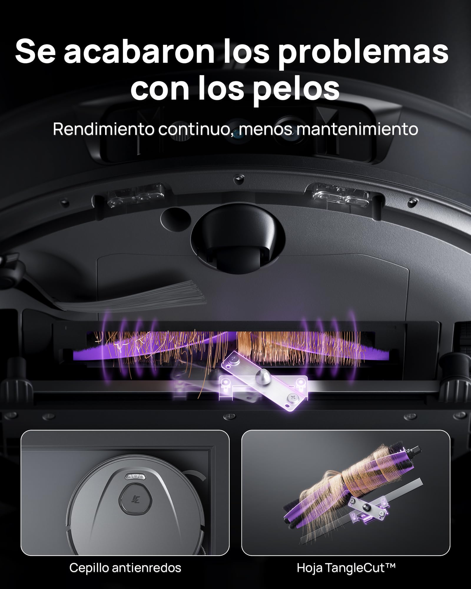 - 【DirtScan con inteligencia artificial】Identifica más de 100 objetos y tipos de suciedad, incluso en la oscuridad con iluminación automática, y ajusta su método de limpieza de forma autónoma: repitiendo el fregado en manchas difíciles o aumentando la succión para residuos más grandes como la comida de mascotas