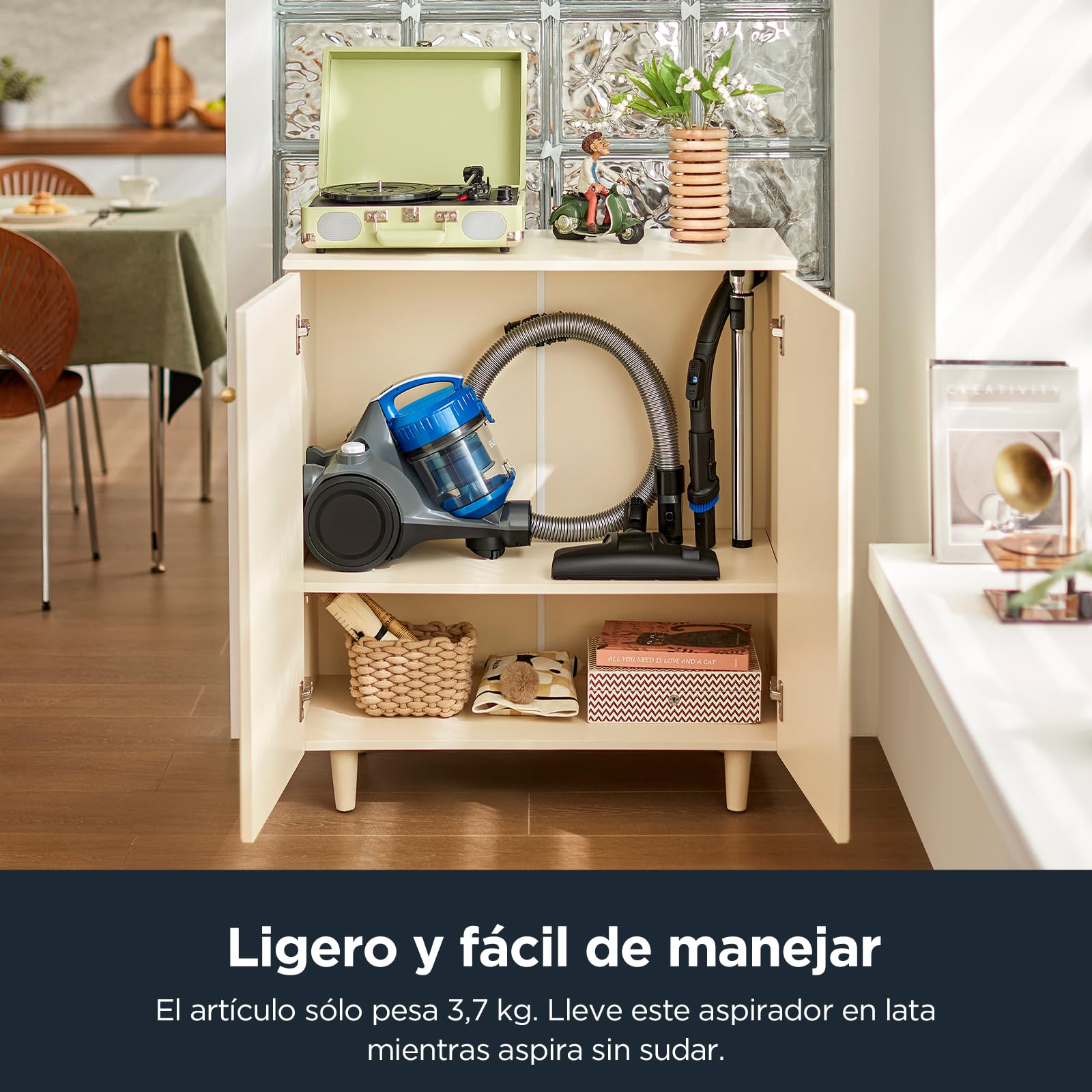 - Diseño compacto y contenedor de polvo de 1,5 litrosLa aspiradora cilíndrica Whirlwind está diseñada para la comodidad y el almacenamiento, con una taza de polvo de 1,5 litros, un filtro sin bolsa y un diseño de filtro lavable, No hay costos adicionales para la sustitución de la bolsa de polvo o el filtro