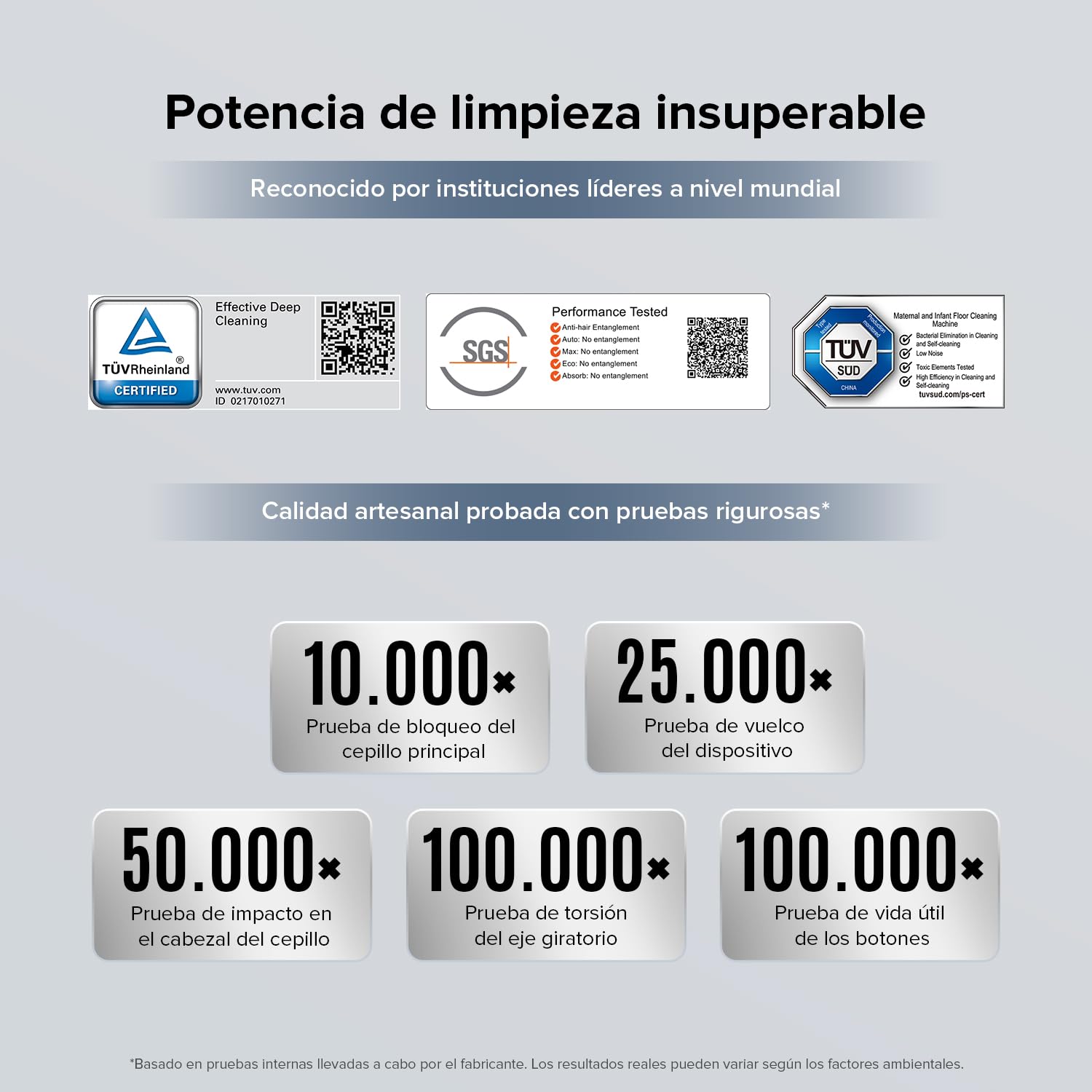 - Sin marcas de agua ni enredos de pelo: ¡disfruta de un brillo sin manchas de agua con nuestra aspiradora-fregona! Está equipada con dos rascadores para un acabado perfecto y un peine curvado para evitar enredos del pelo de las mascotas, que han recibido la certificación antienredos de SGS y TÜV, por lo que el resultado de limpieza en suelos duros siempre será impecable.
