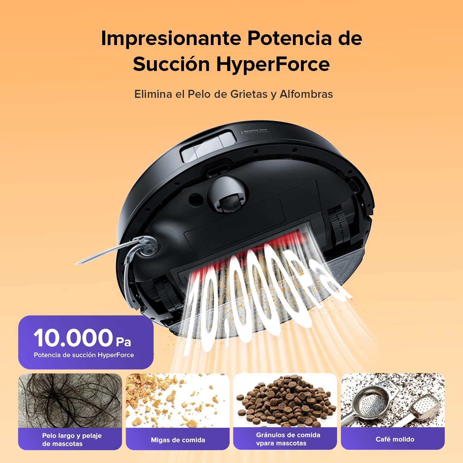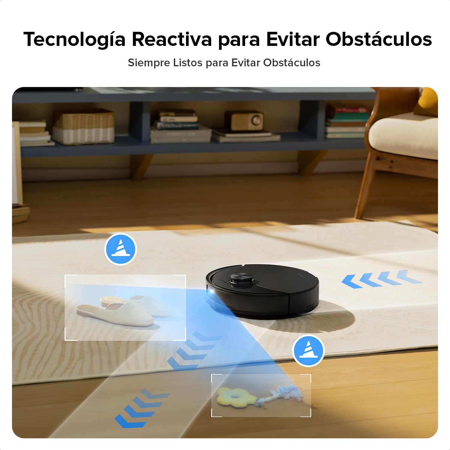 - Evitación de obstáculos ReactiveTech: Gracias a la luz estructurada, el Robot Vacuum detecta y sortea sin esfuerzo los obstáculos, incluso en habitaciones desordenadas con objetos esparcidos por el suelo.