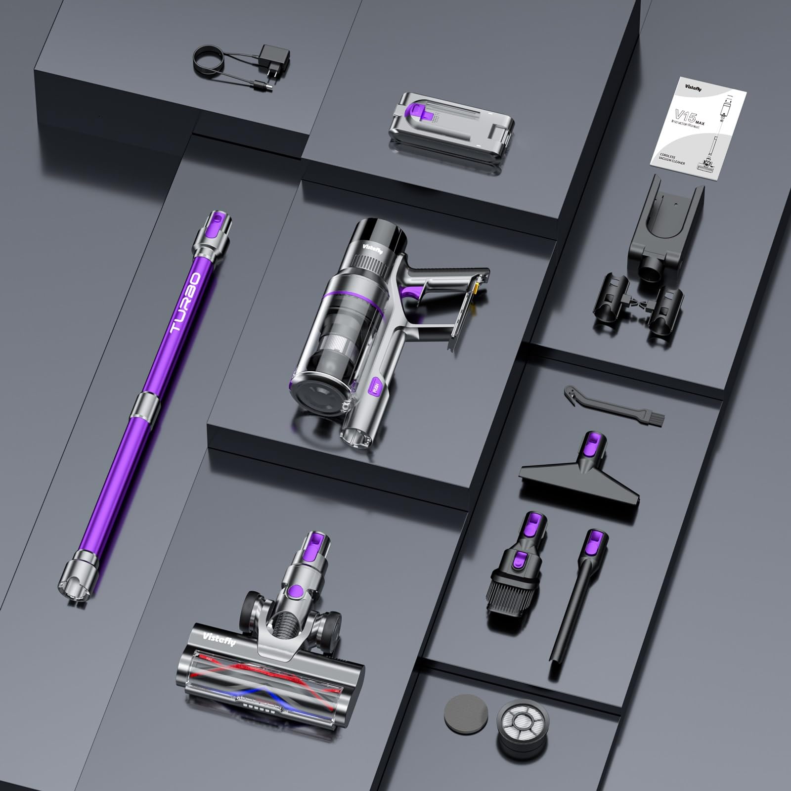 - RECONOCIMIENTO INTELIGENTE DE POLVO Y CEPILLO MEJORADO EN V: el V15sMAX ajusta automáticamente la potencia de succión a la cantidad de polvo. El cepillo eléctrico de piso mejorado en forma de V no se enreda fácilmente y es adecuado para diferentes tipos de pisos, como pisos de madera, azulejos y alfombras. La longitud del tubo de extensión de la aspiradora de batería se puede ajustar manualmente para aprovechar al máximo el espacio disponible cuando se guarda.